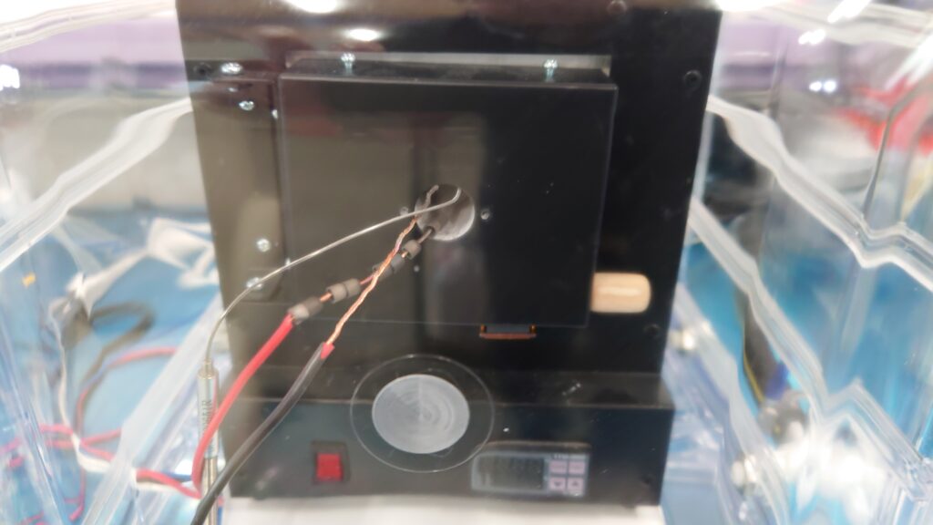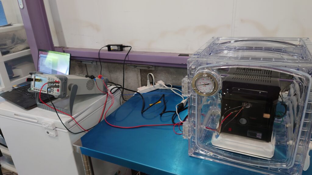 その後、電気炉の電源を入れるとデシケーターの壁も溶けずに無事600℃まで上げることができ、電流測定も完了しました。